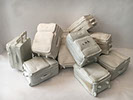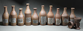 ceramic, flax, bones, metal, paper, grass, sand, and claw