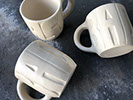 Influenced by the deeply treasured "blind emboss" treatment in the graphic and print world, you will see this fondness expressed in my carved ceramic piece as a blind emboss texture on clay. The tactile quality is expressed in raised letterforms on a single colored clay containing a bold message: "BADASS". Empowerment is expressed in the subtlety as you start or end your day with your BADASS mug.