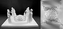 To observe the richness and diversity of the many cultures that have entered the United States, I transcribed this portion of “The New Colossus” onto porcelain clay in twenty-five languages provided by friends and acquaintances, sixteen of which you see displayed here. These unique slip-cast porcelain pieces represent seven decades of immigration between the years 1950-2013. Each of the 7.5 x 11" crumpled fragile porcelain letters references the tenuous time we live in. Individual porcelain pieces are accompanied by a QR code link to a voice translation of each language.