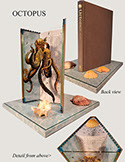 hand-built, cone 10 stoneware, soldered and sandblasted glass