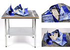 In Rescue Breathing, I created a memorial to George Floyd, composed of three clay cloth, swaddling elements, and two porcelain tablets with Mishima, script reading, "I can't breathe" on one side, and "Share my breath" on the other side. It speaks to our need to grow as a society: protecting human life and sharing our breath with all people and all races. I am a teacher, and our number one priority in the care of our students is their health and safety. I dream of a world where the police put the health and safety of all people as their top priority. This memorial seeks to bring attention to our shared humanity and forecasts a time where we can be better as a society. The pieces sit upon a worn, weathered, and distressed board that mimics the pavement where Floyd's life was taken. I intentionally placed the elements on a sterile, clean, stainless steel table to set up contrast and tension in the arrangement.