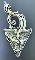 With this brooch, I combine stylized overlapping arch forms with a charming bit of marble-engraved text from the Basilica of Our Lady in Trastevere in Rome, my own way of preserving antiquity in a new context.